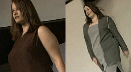 This fall 2002 television appearance by Kate Dillon caused quite a sensation when it originally aired, due to the gorgeous styling, featuring Kate in an off-the shoulder top which was quite daring, for the time. The model’s fair features look lovely on film, although the public has ever preferred her with longer hair. This one-minute video is actually a splice of three separate clips: (a) an introduction, (b) Kate’s account of leaving minus-size modelling, and (c) her response to the query, “Is it hard to find fashionable clothing in plus sizes?”